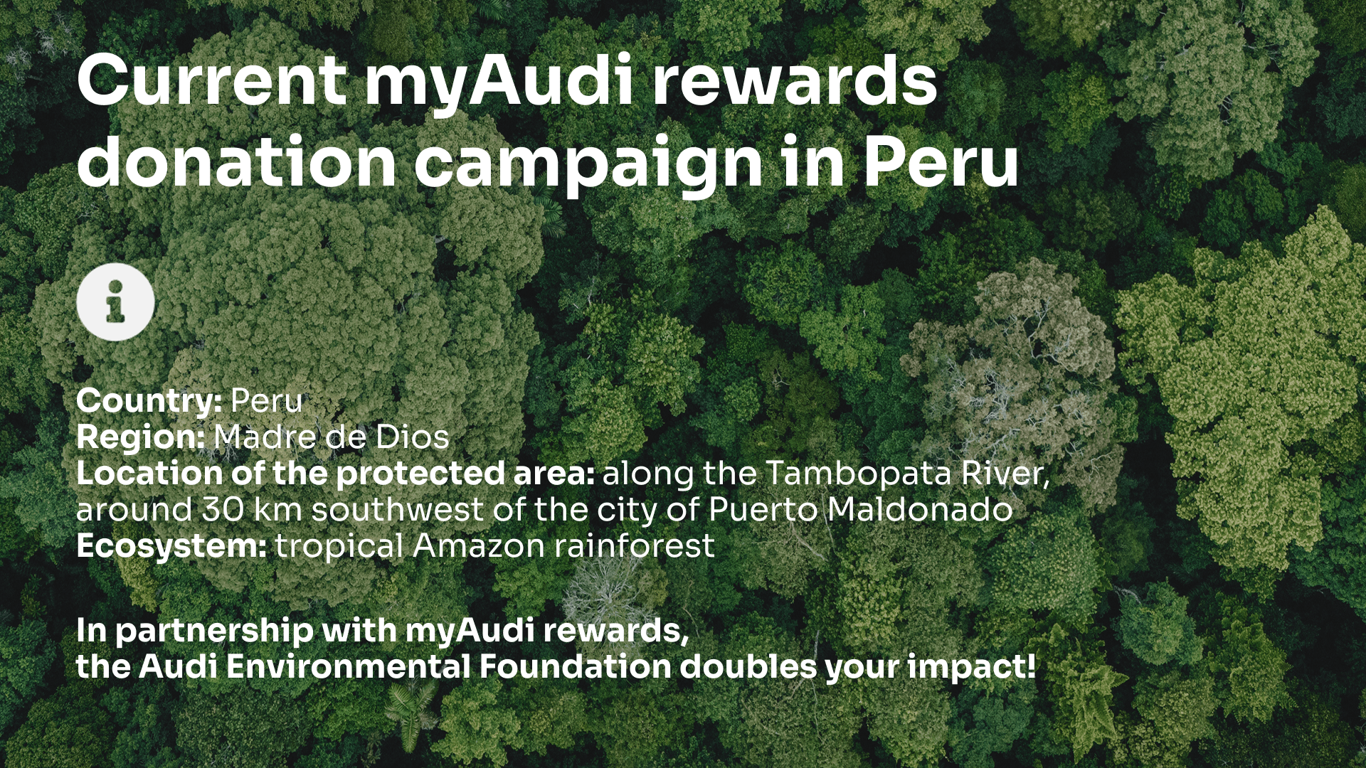 With support from the Audi Environmental Foundation , you can now contribute to the preservation of unique rainforests by redeeming a reward in “myAudi rewards.” This initiative is carried out in collaboration with Wilderness International.