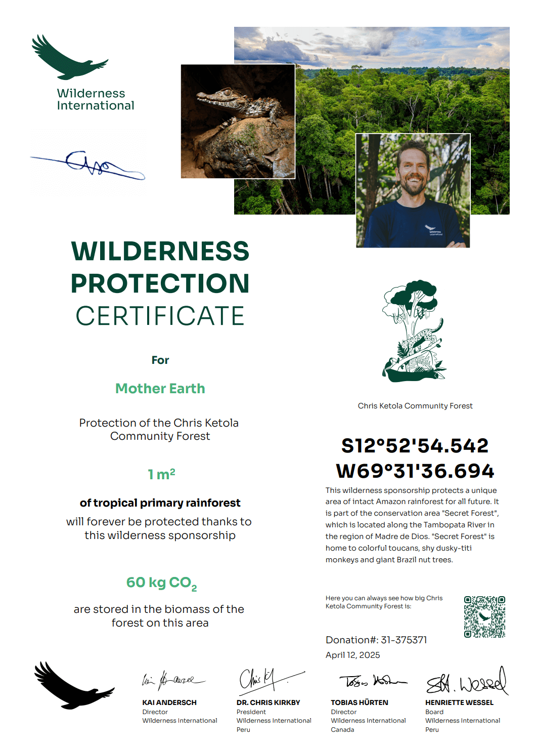 Immediately after your donation, you will receive a personalized certificate about the piece of wilderness you have protected. It also makes a great gift!