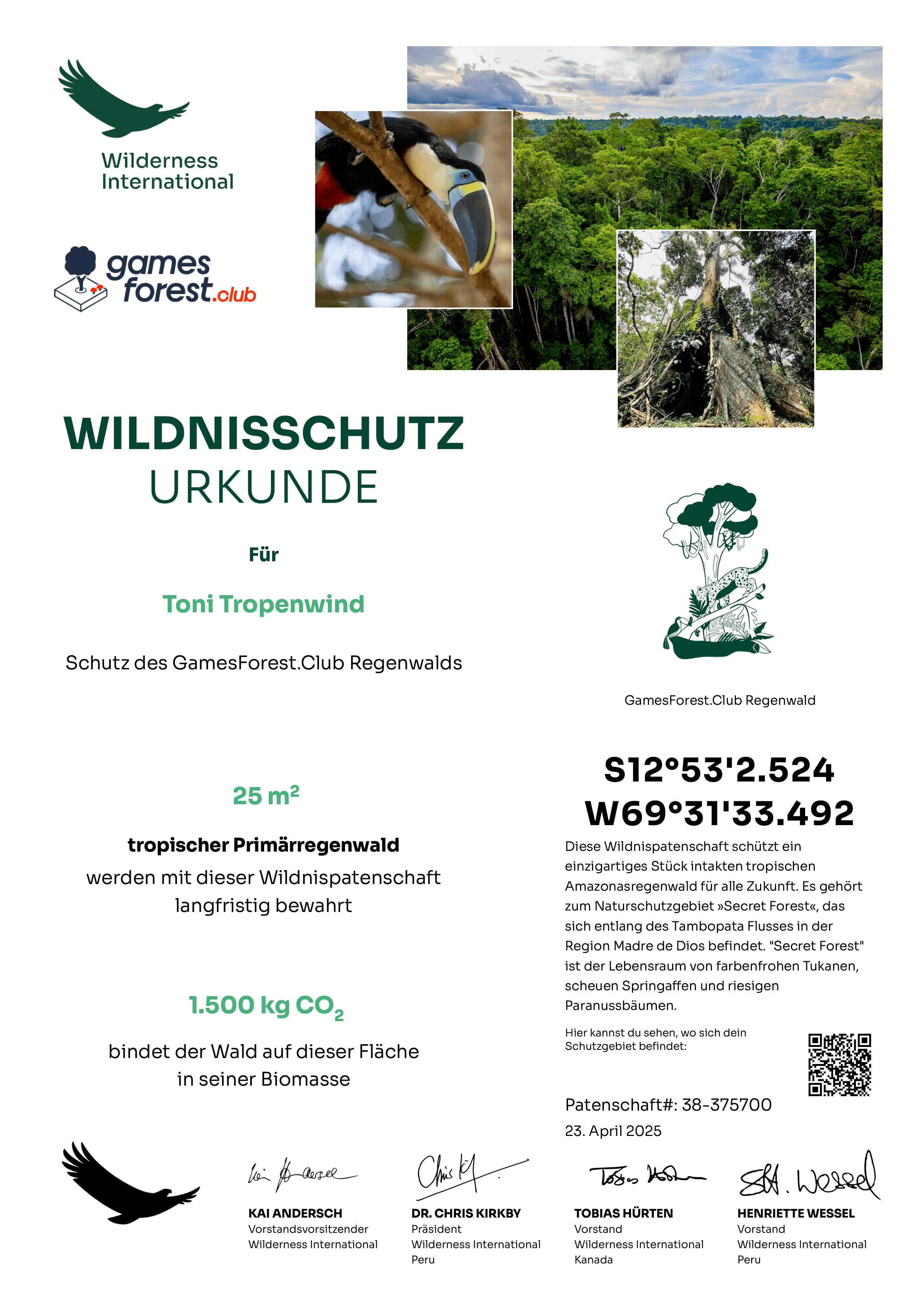 The GamesForest.club has joined the mission of Wilderness International to protect the last rainforests on our planet and thus counteract climate change. Together we are protecting rainforest in Peru and Canada, and with it, valuable habitat for a huge variety of species!