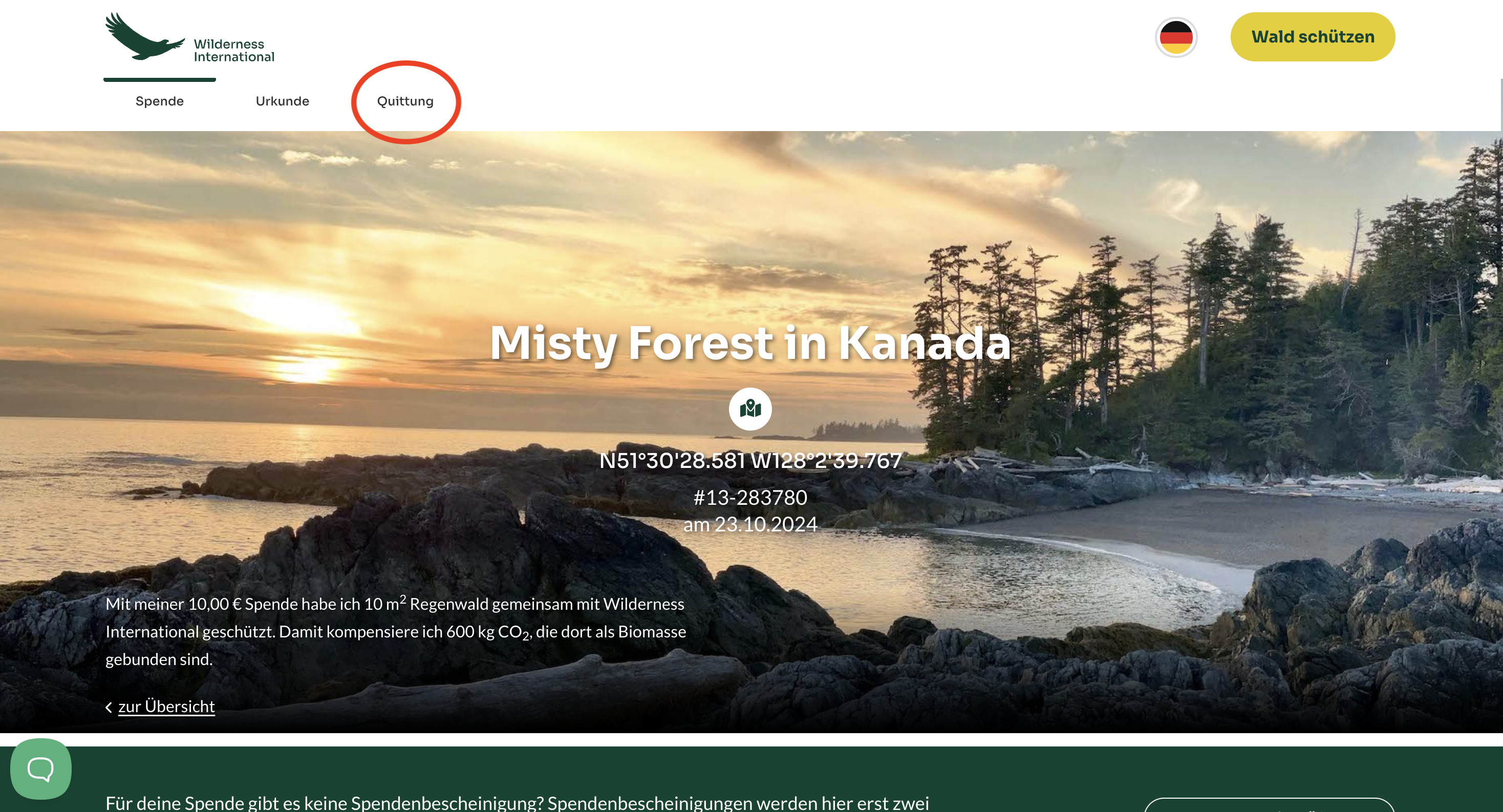 - transparent: You will receive a certificate with the name of the person receiving the gift, as well as the geocoordinates and an aerial photo of the piece of forest you are protecting