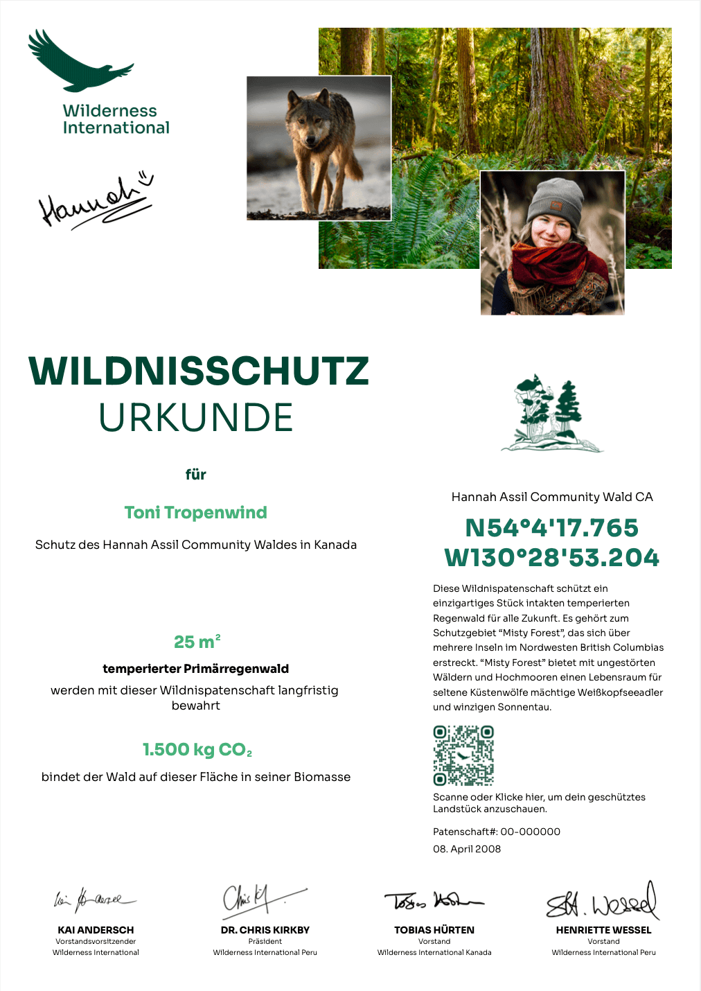 you will receive a certificate with the geo-coordinates and an aerial photo of the protected forest area