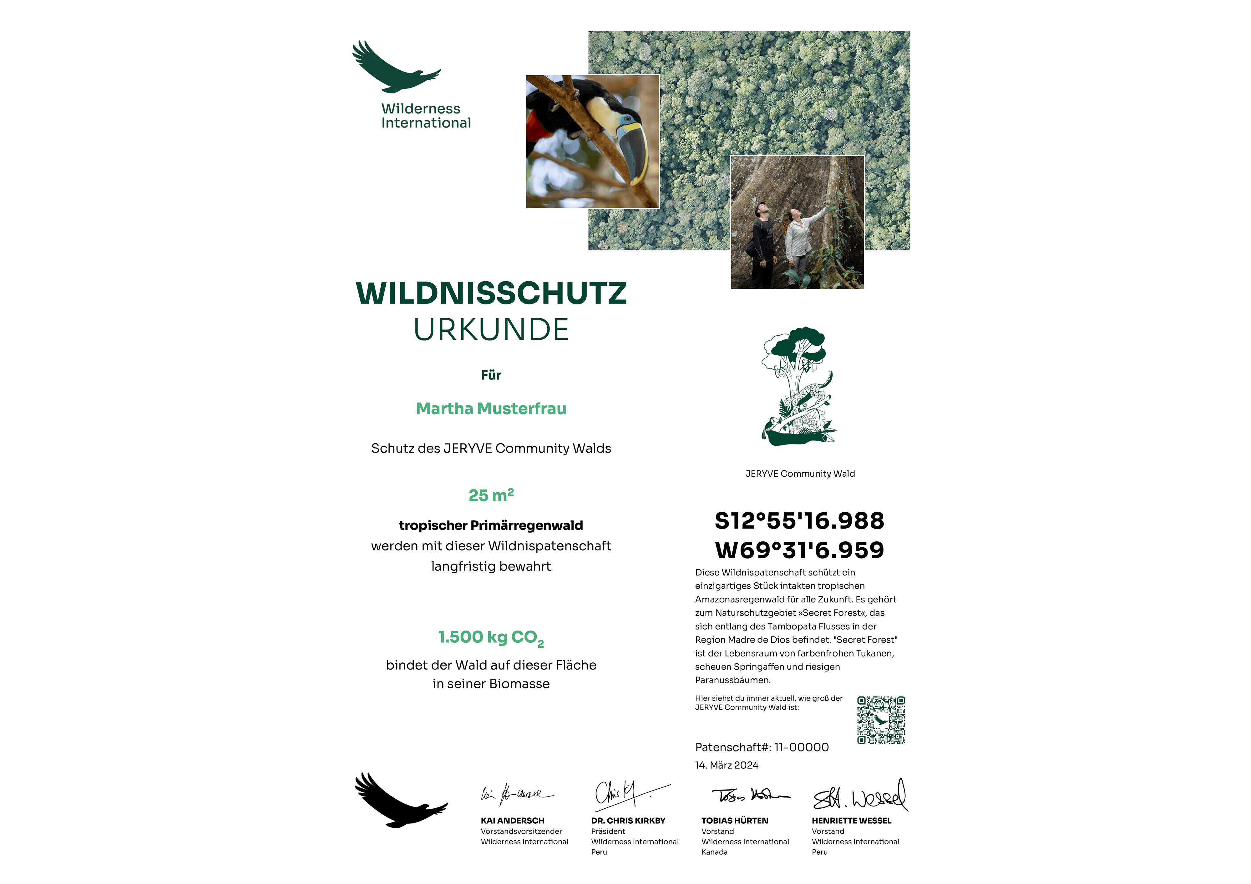 Transparent: you will receive a certificate with the geo-coordinates and an aerial photo of the protected forest area