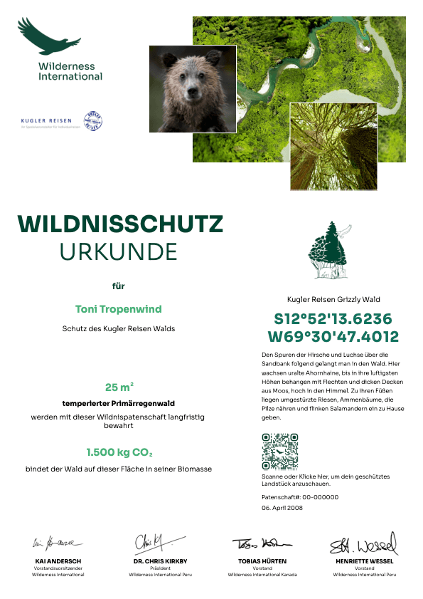 The foundation, which is based in Peru, Canada and Germany, purchases legally secure wilderness areas and protects them for the future. The purchases are refinanced through donations, which ensure the long-term protection of the areas, supports environmental education projects, and research into CO2 storage and biodiversity.