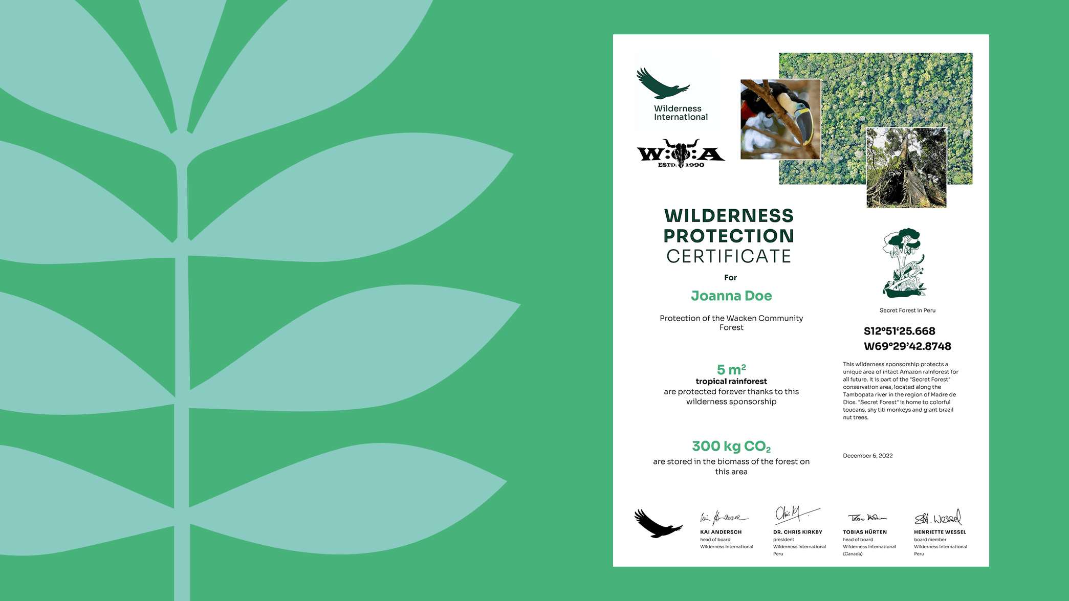 As a partner of Wilderness International, you can symbolically establish your personal company forest and thus protect rainforest for all time.