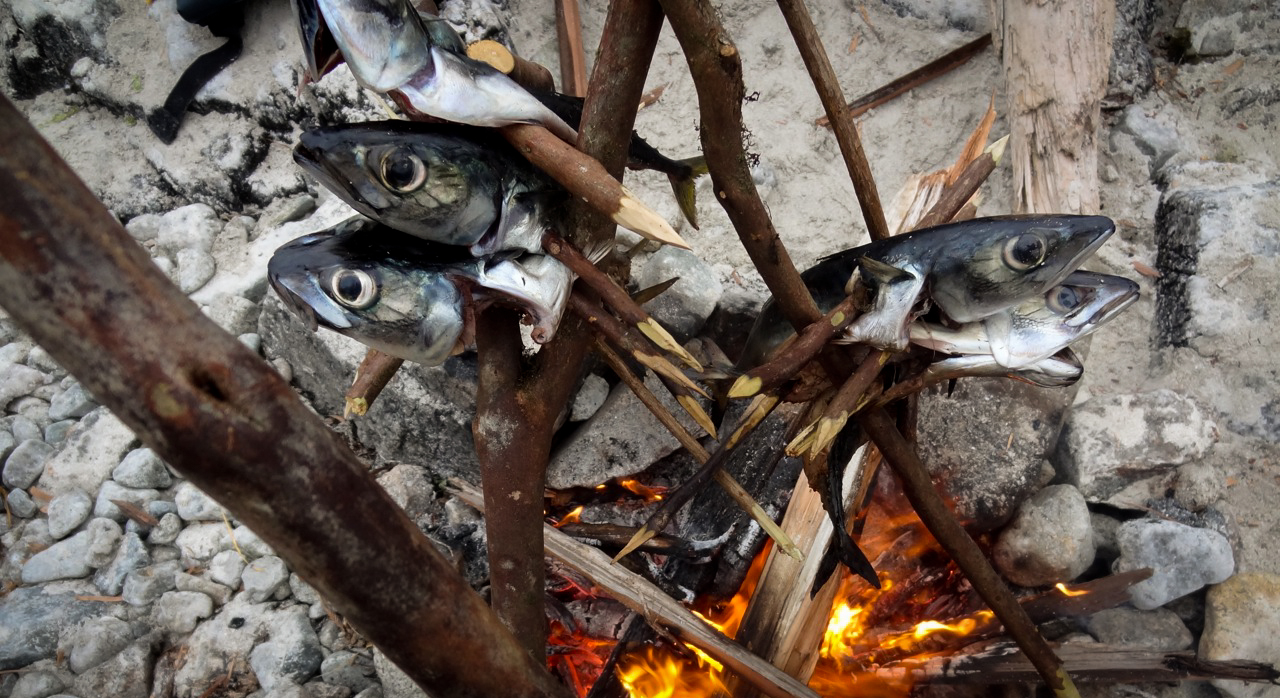 This river is very important for us, because if more than 20 people want to travel to an island in canoes and stay there for longer than a week, it is impossible to take enough drinking water with them. In addition to drinking water, we also enriched our dinner with fresh fish and berries. But before we got there, we had to adapt our small camp to the weather conditions. Teamwork was required to set up dry pitches and stretch washing lines.