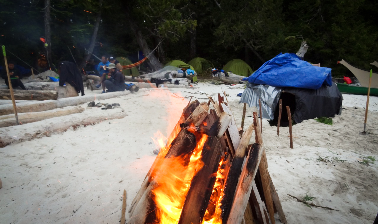 First of all, we had to get the right equipment. So after breakfast, we set off by canoe to a neighboring island. To build a sweat lodge, you need enough firewood and branches to support the hull. We also collected berries and topped up our water supplies.