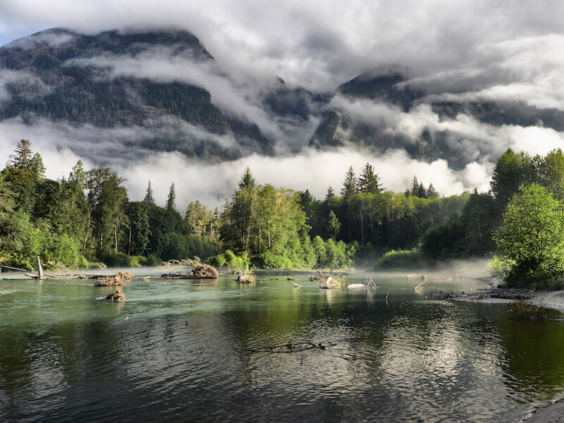 They still exist in the wilderness of the Toba Valley: a healthy grizzly population. As there is plenty to eat, a mother can give birth to 3-4 cubs in a year. The diverse vegetation of the river courses is on the table, and in late summer and fall the bears can gorge themselves on thousands of salmon for the winter. The root cavities of ancient giant trees are essential for their six-month hibernation, which can only be created by undisturbed natural processes.