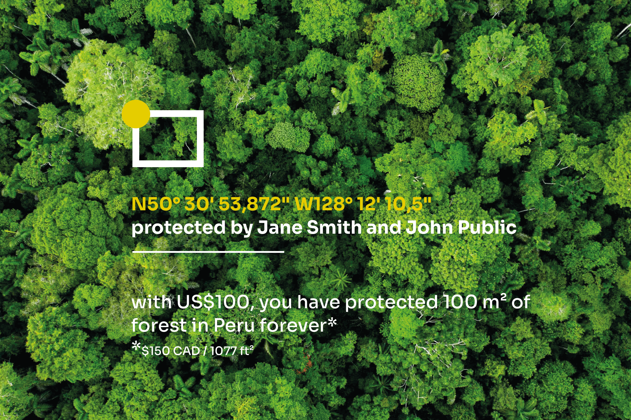 - Transparent: you will receive a personalized certificate with the geo-coordinates and an aerial photo of the piece of forest you protected