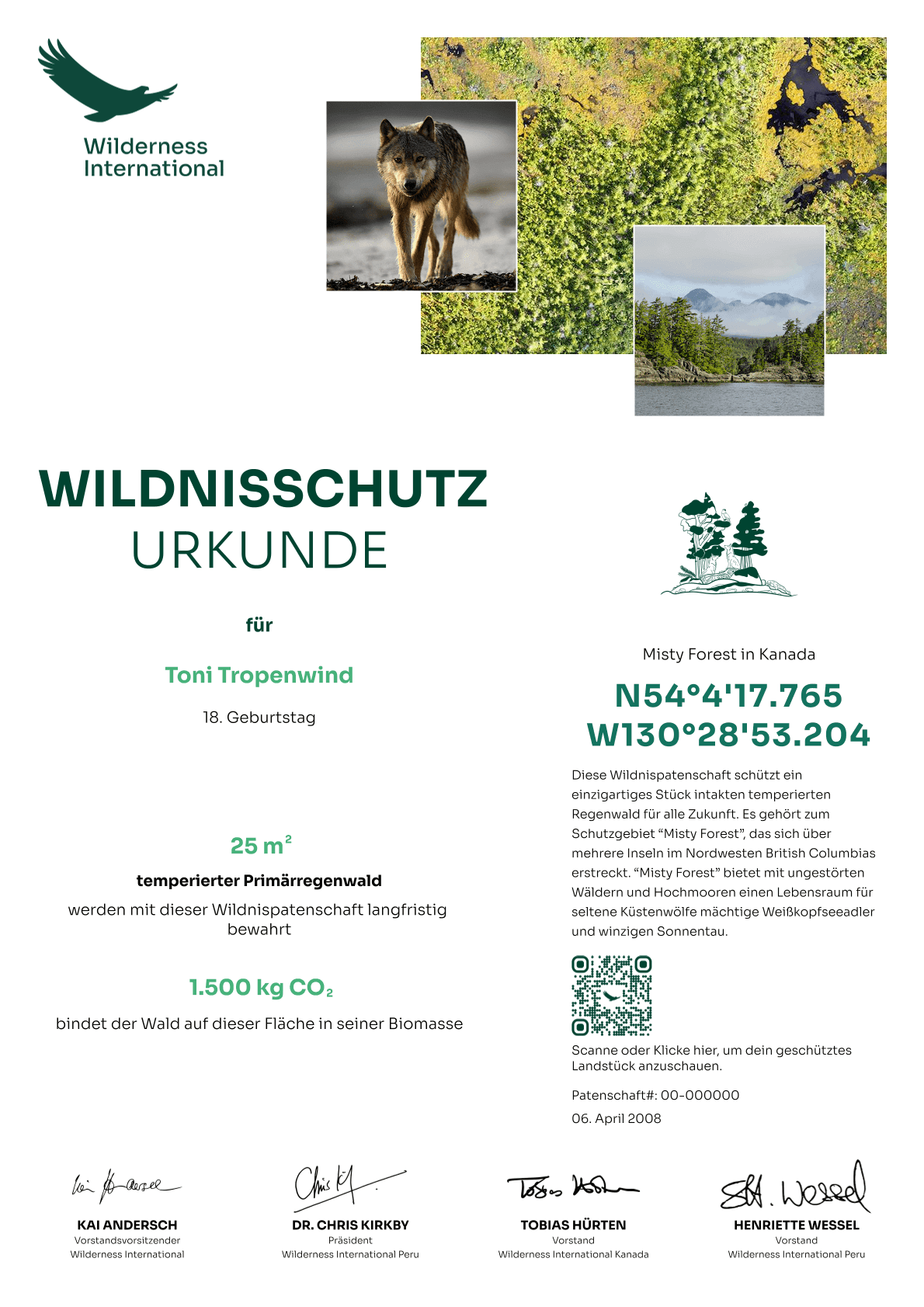 Immediately after your donation, you will receive a personalized certificate about the piece of wilderness you have protected. It also makes a great gift!
