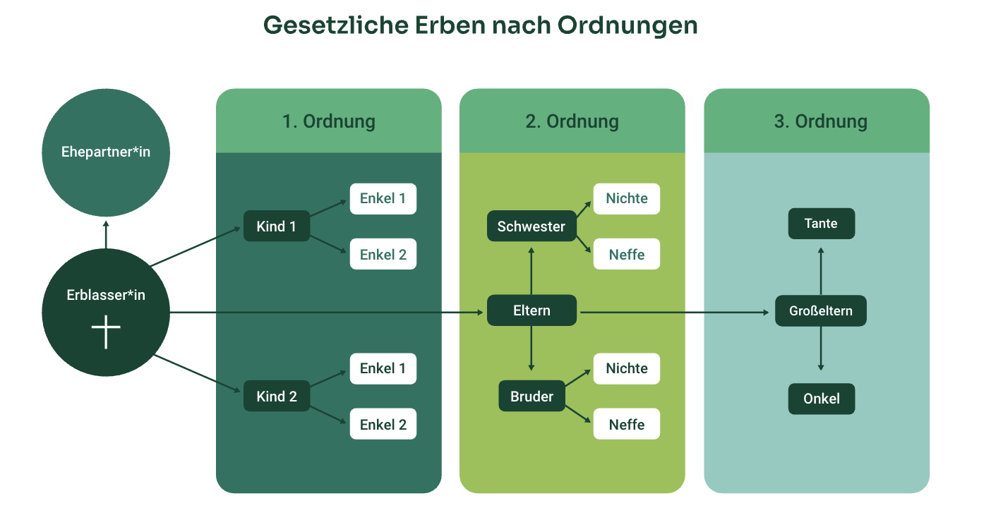 Only your will partially overrides the legal order of succession. Making a will is much less about the orderly distribution of inheritance and much more about ensuring freedom of design and self-determination.