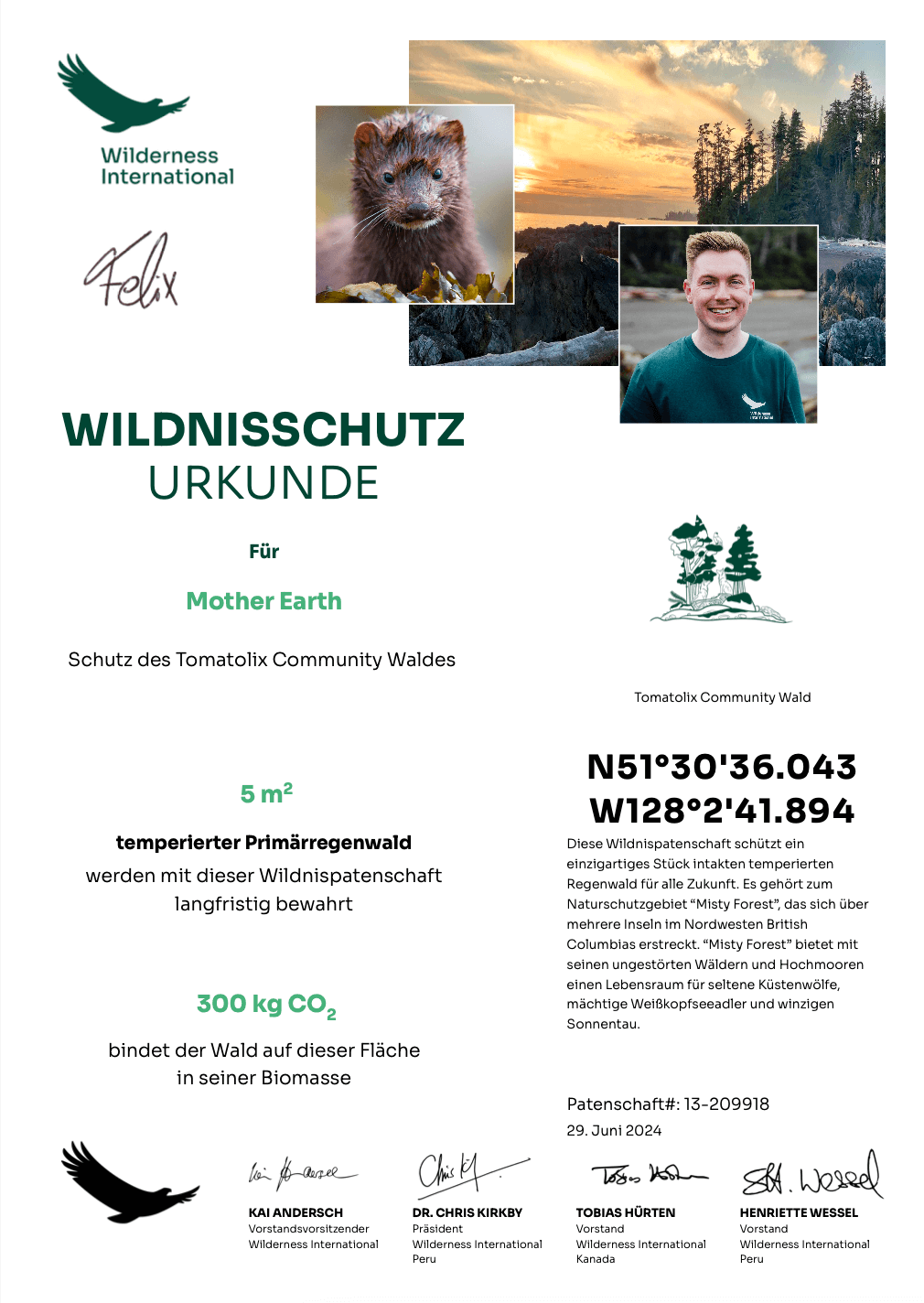 Your wilderness protection certificate - also a perfect gift